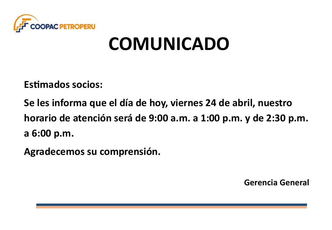 Por ello, invocamos a nuestros socios a mantener la calma y la confianza en su Cooperativa, reafirmando nuestro compromiso de continuar trabajando con responsabilidad y transparencia en beneficio de todos los socios.
