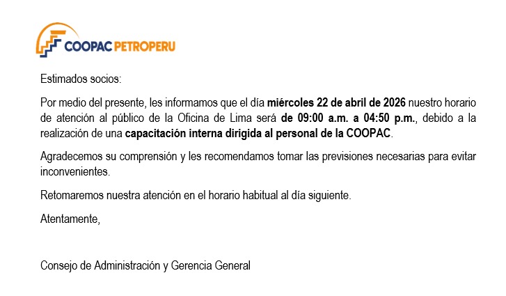 Para cualquier información adicional, pueden acercarse a nuestras oficinas o comunicarse con los canales oficiales de la Cooperativa.